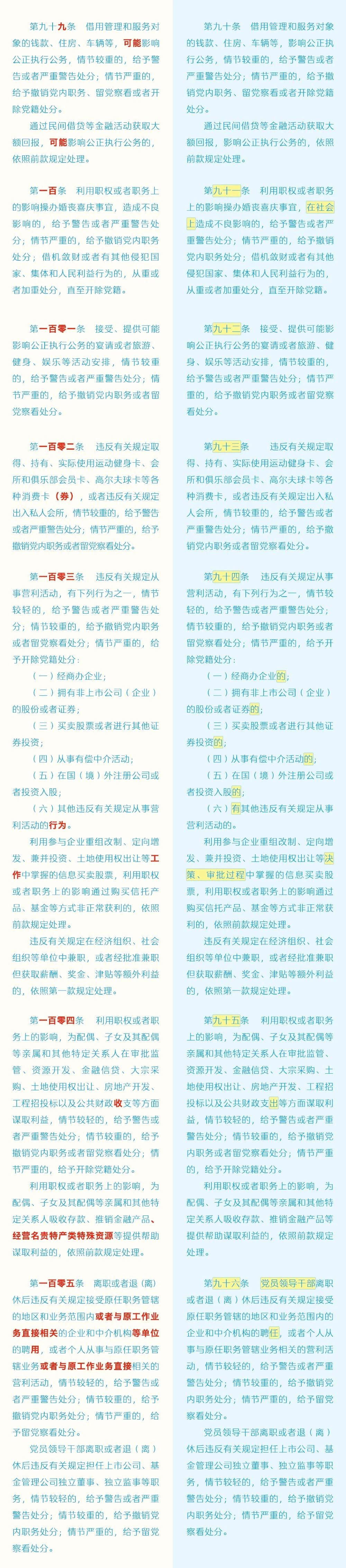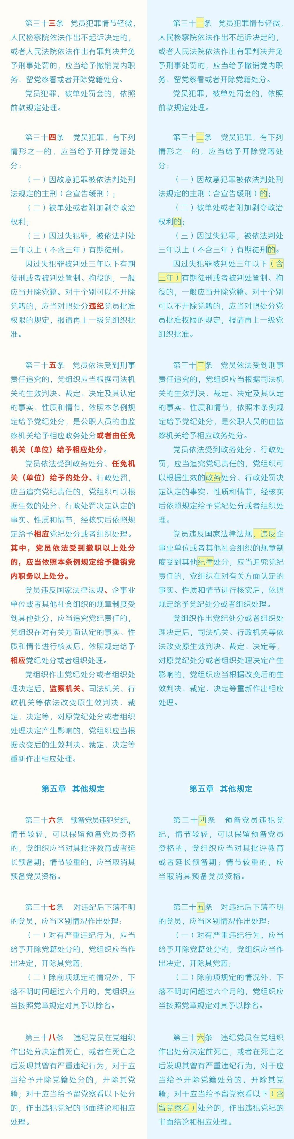 黨紀學習教育 | 《中國共產(chǎn)黨紀律處分條例》修訂條文對照表