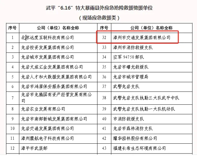 漳州交通集團(tuán)作為現(xiàn)場應(yīng)急搶險救援單位,位列其中。