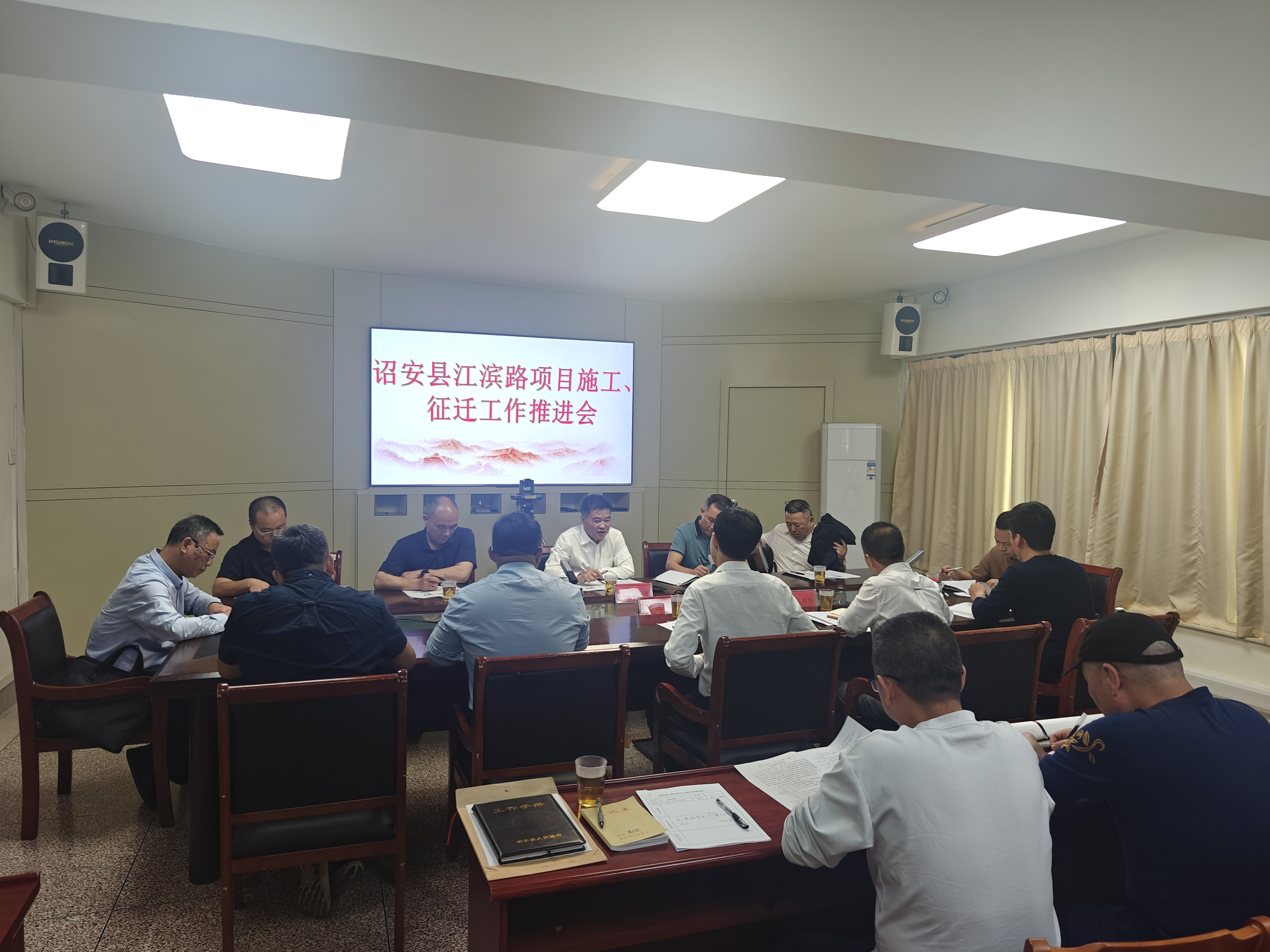 林長河總經(jīng)理一行與詔安縣副縣長黃選謙到縣政府組織召開項(xiàng)目推進(jìn)會,協(xié)調(diào)解決關(guān)于工程進(jìn)度安排、征地拆遷等項(xiàng)目施工中存在的問題。