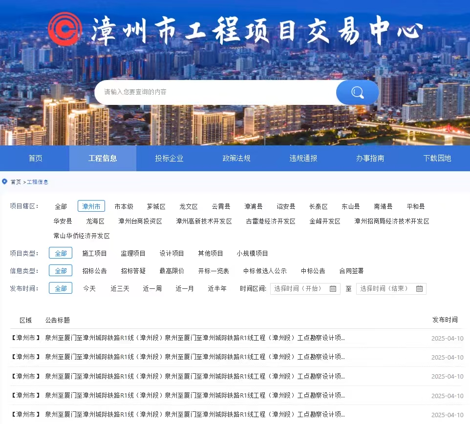 4月10日,由建設(shè)單位漳州市鐵路投資開發(fā)有限公司主導(dǎo)的泉州至廈門至漳州城際鐵路R1線(漳州段)項(xiàng)目迎來關(guān)鍵節(jié)點(diǎn)——第二輪招標(biāo)公告正式發(fā)布,標(biāo)志著該項(xiàng)目進(jìn)入全面深化設(shè)計(jì)與實(shí)施階段。此次招標(biāo)涵蓋五大標(biāo)段,涉及停車場、應(yīng)急指揮中心、變電設(shè)施等核心工程,進(jìn)一步推動項(xiàng)目高效落地。