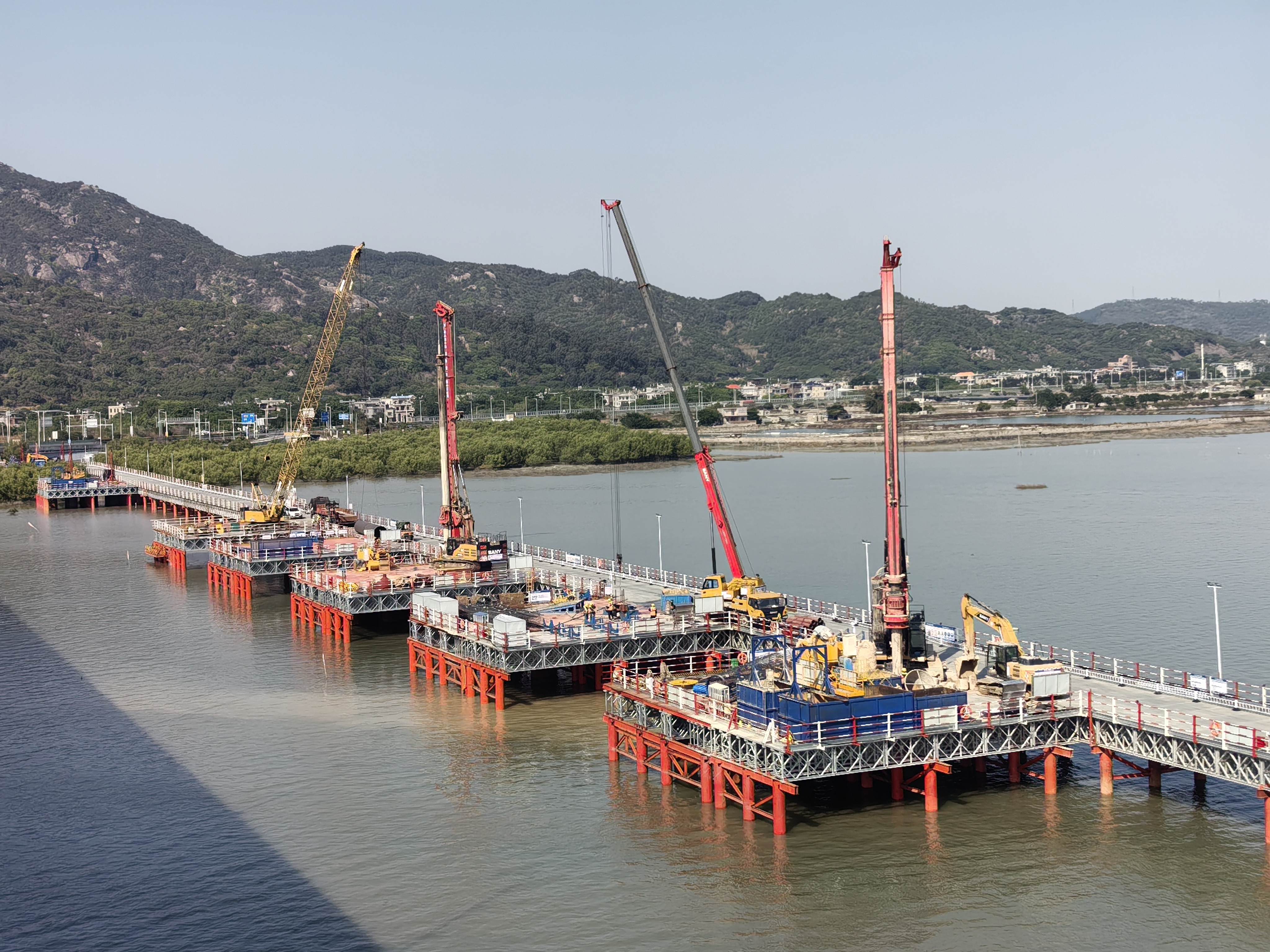 在各方的共同努力下,漳汕高鐵(福建段)3標(biāo)全線已累計完成樁基975根,承臺88個,墩身71個,海上鋼棧橋完成3168米,隧道正在進行進洞施工前的準(zhǔn)備工作。