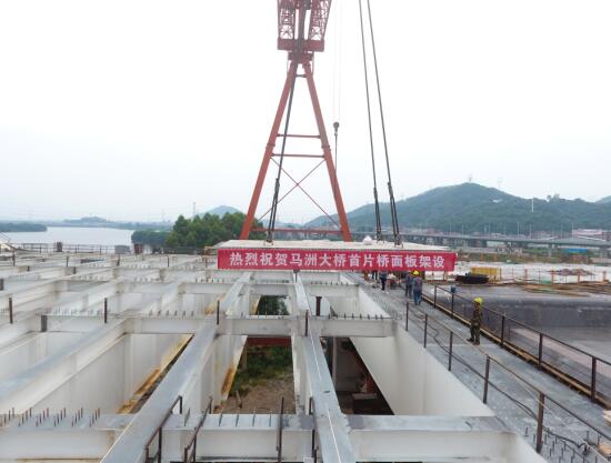 7月15日,在全體參建人員的共同努力和協(xié)作下,漳州馬洲大橋主橋首片橋面板成功架設(shè),這一施工節(jié)點(diǎn)的完成標(biāo)志著該項(xiàng)目工程進(jìn)入到了正橋橋面板的架設(shè)階段。